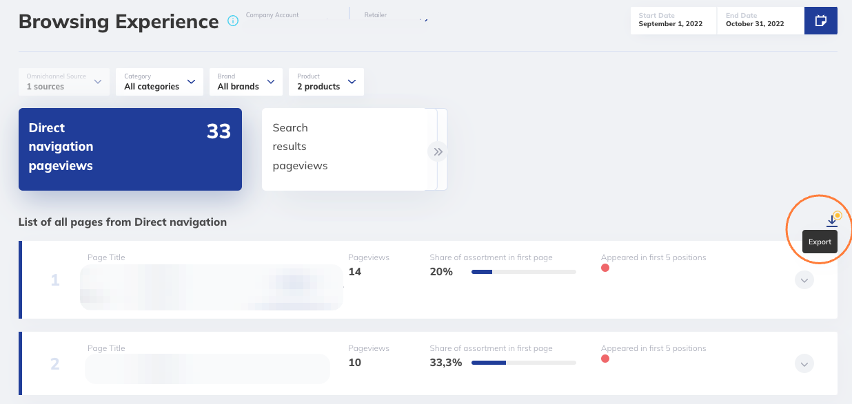 We wanted to make it simpler for Brands to download and process important keyword and navigation trends, so we added an enhanced export functionality on the Browsing Experience screen.
