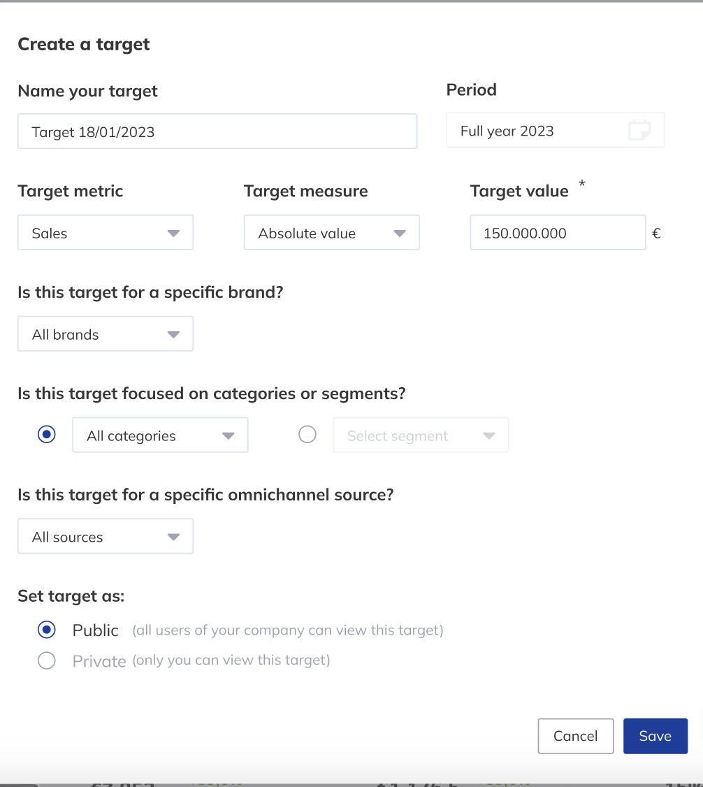 Retailers can see Public Targets that the company has set