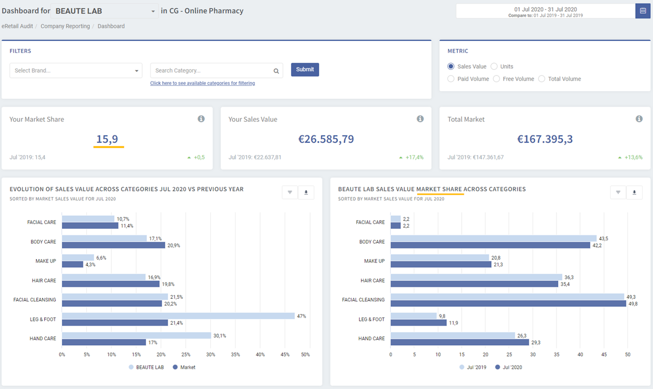 Dashboard gives you a quick Overview of your own performance as well as your categories'.