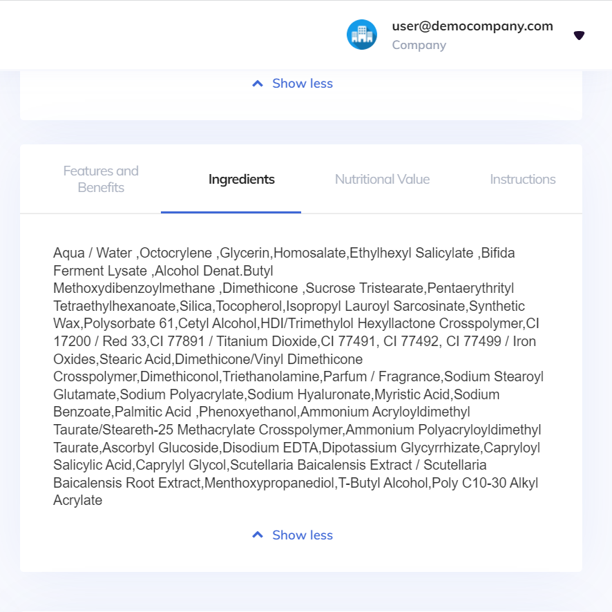 Features & Benefits: Highlight the most important features and benefits of your products. E.g. vegan, gluten-free, SPF, recycled materials, and vitamins