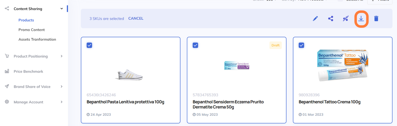 After you select the company, brand, product line or category you want to download content from, you can select multiple products of your interest.