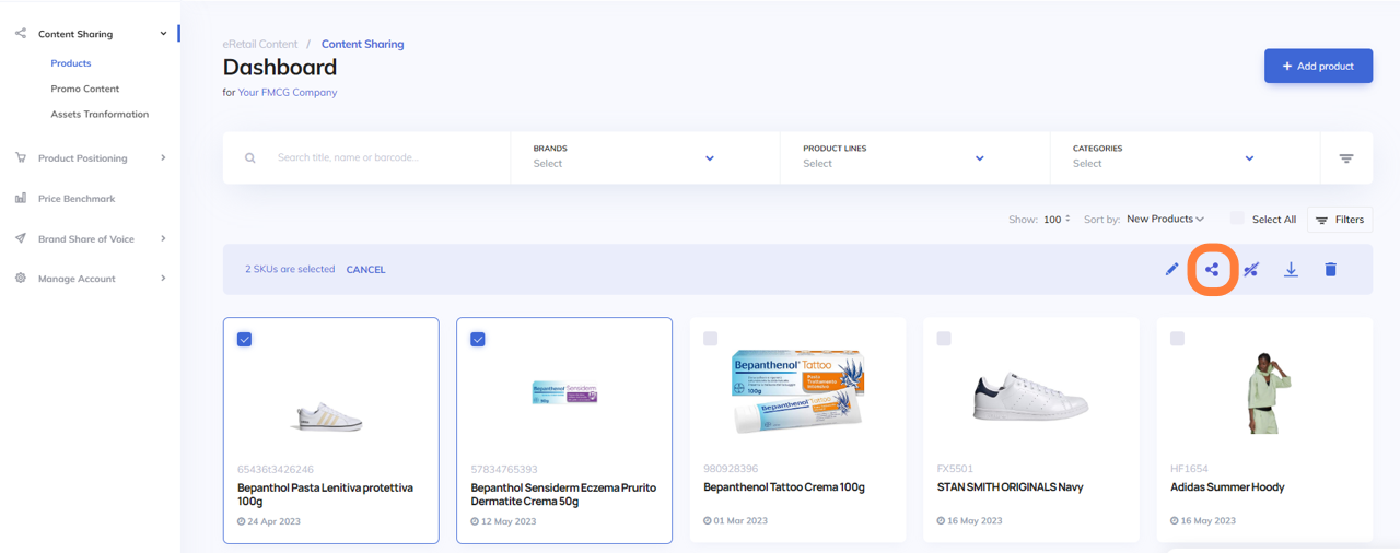 4. By asking that autosharing to be activated by the Customer Success team, where content will be shared automatically to a group of Retailers from a specific industry and a specific country. To learn more about autosharing click here.