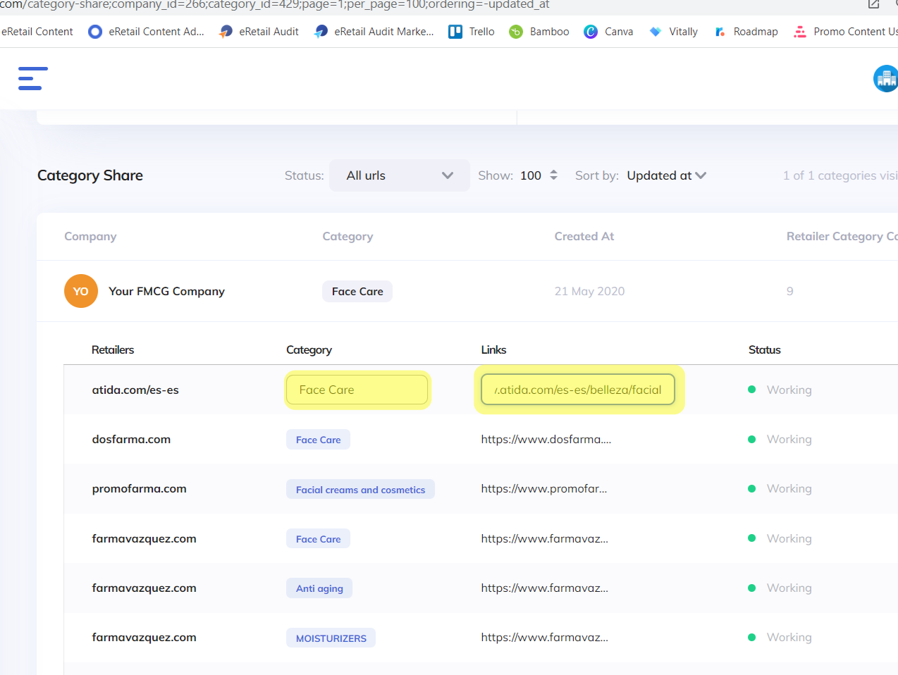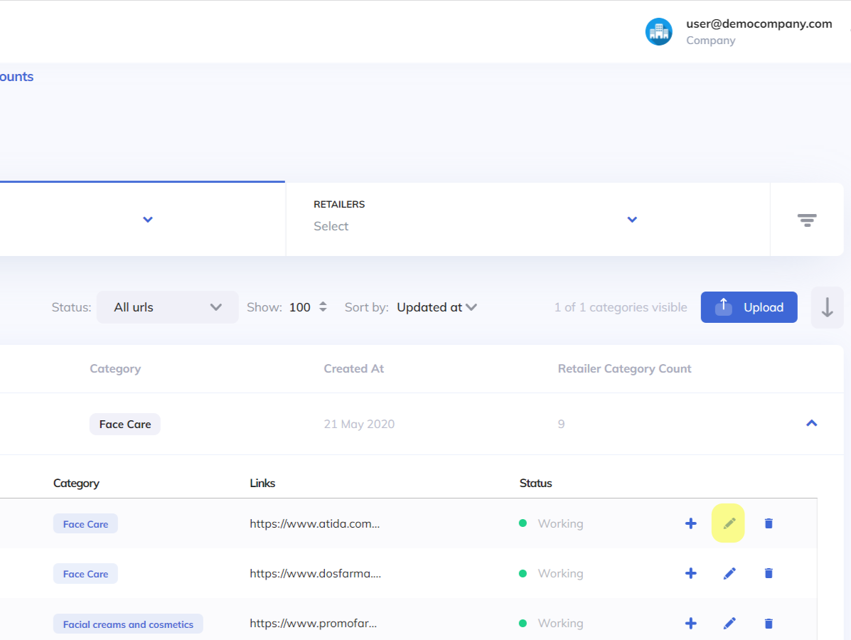 In order to track your Navigation Share and Competition Analysis Navigation results, we need the category URLs from retailers you're tracking per category. Those URLs should be uploaded on Manage Account/ Category Share.