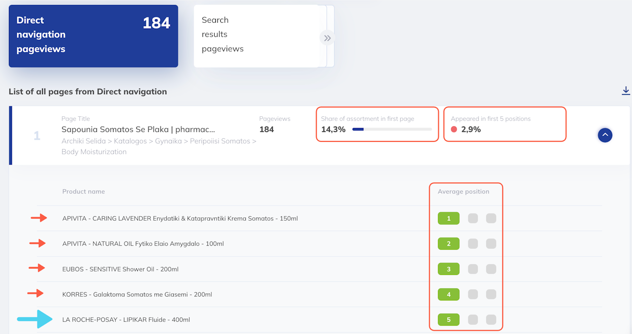 In the example, we can see that our product ranks 5th in the category on average, leaving a lot of room for our competitors to gain more visibility.
