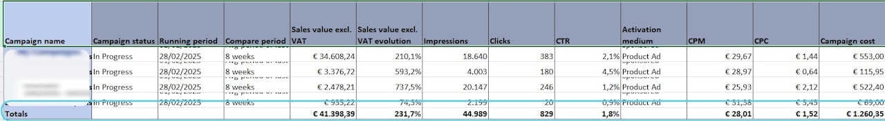 📈 Faster Analysis – No need to manually sum up individual campaign results. Instantly access aggregated insights for sales, ad efficiency, engagement, and product performance.