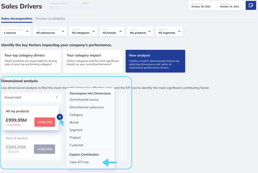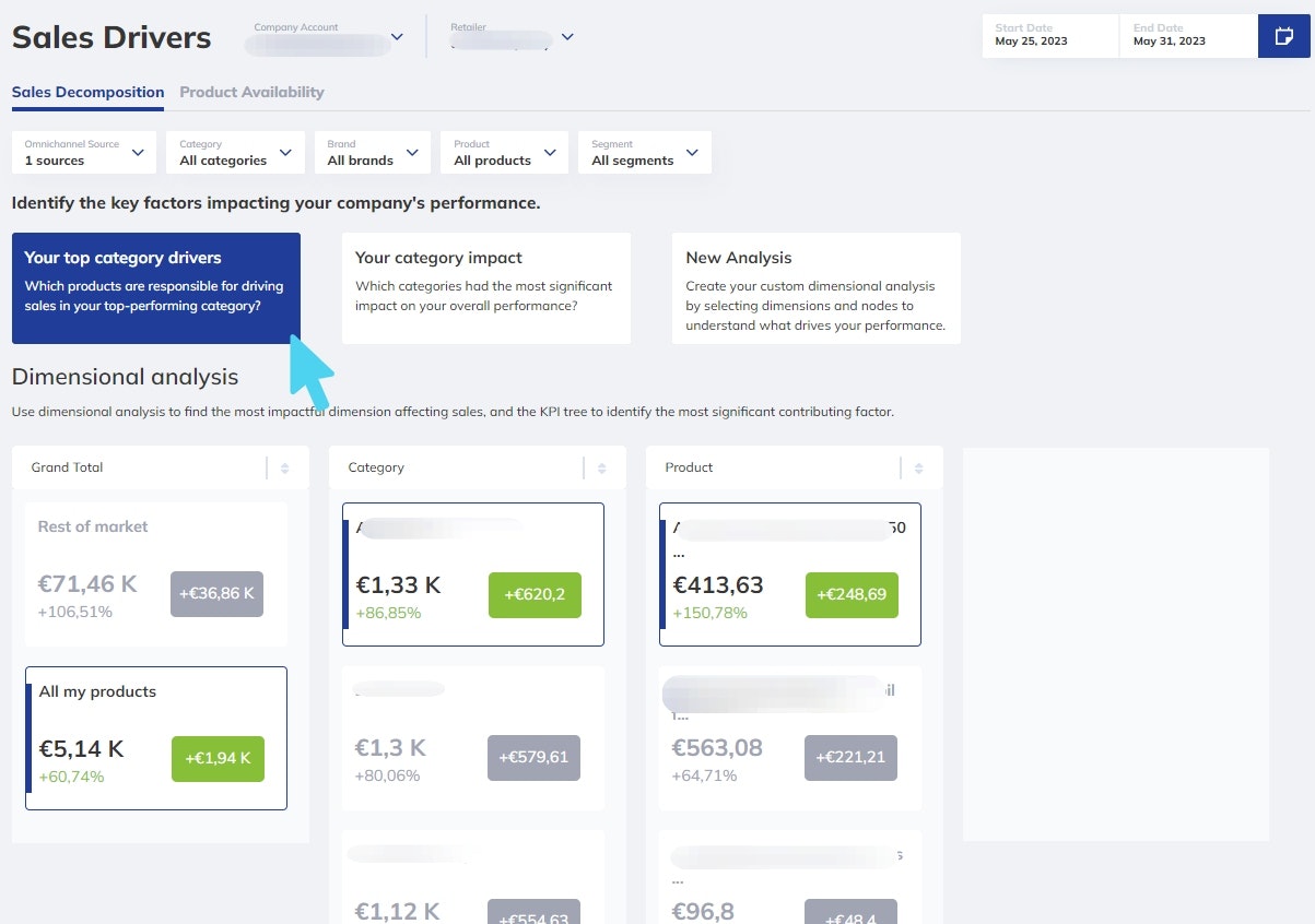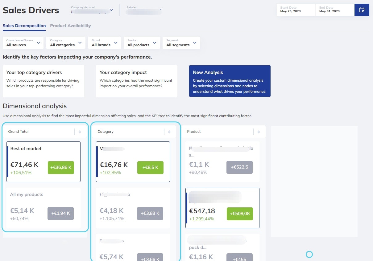 Dimensional Decomposition allows you to drill down into your sales data with a structured approach: