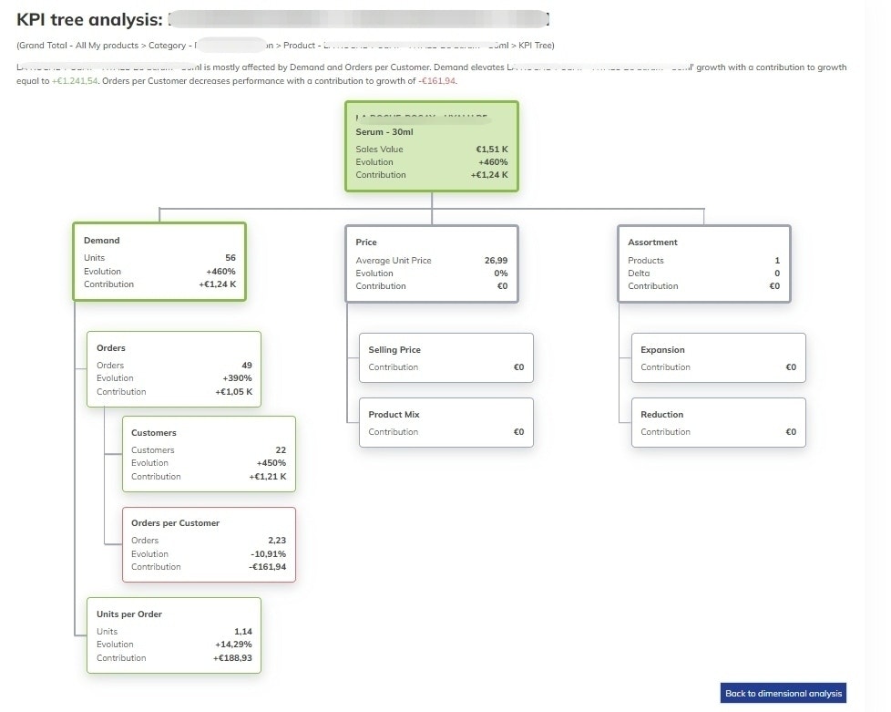This analysis helps you understand how changes in metrics like demand, price, and assortment influence your sales the most.
