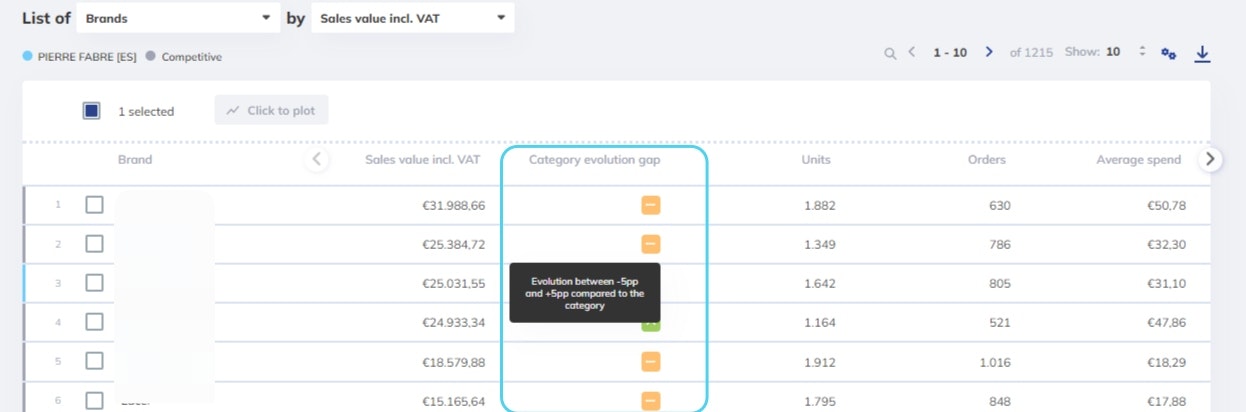 To fix this slight inconvenience, we designed Category Evolution Gap which acts as an indicator and benchmarks the evolution of a brand/product against the total evolution of the categories to which they belong 👉 the Category Evolution Gap.