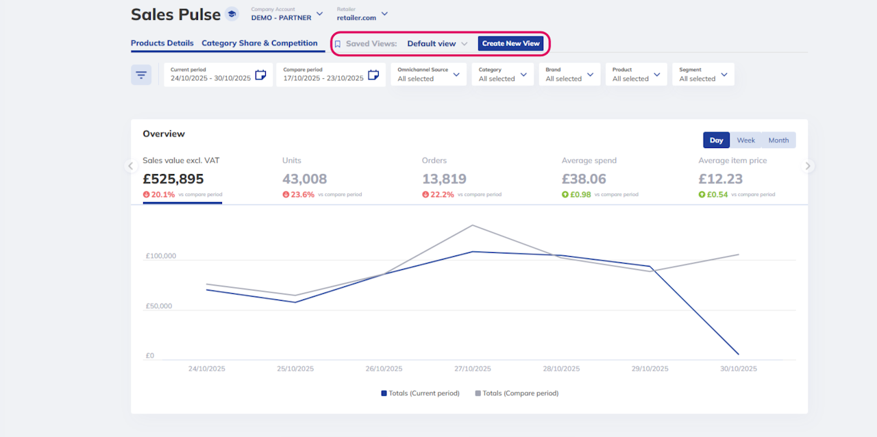 Saved Views let you capture your ideal way of analyzing Sales Pulse - and reuse it anytime in one click.